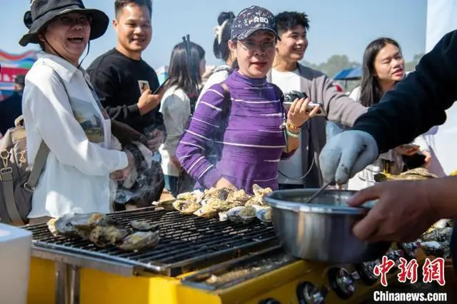 11月30日,2024年钦州蚝情节在平陆运河出海口处的沙井岛蚝情广场开幕,现场的蒜蓉烤蚝、芝士大蚝、清蒸大蚝等各色大蚝美食,以及浦北陈皮、石祖禅茶、灵山腊味、贵台泉水豆腐花、越南咖啡、猫山王榴莲等,琳琅满目的钦州特色美食和东南亚特色美食,吸引来自全国各地的民众大快朵颐。